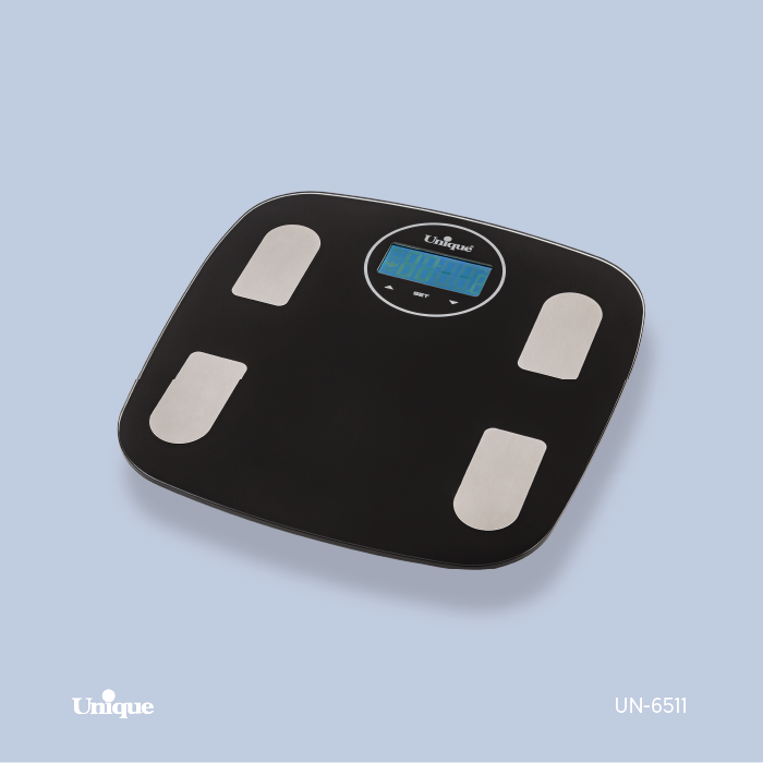 ناموجودترازوی حمام برند یونیک Unique کد UN-6515 جنس شیشه ای بلوتوث دار