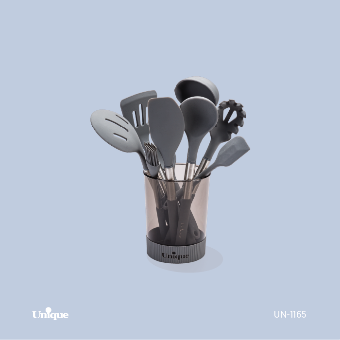 شامل دو عدد ملاقه / دو عدد کفگیر / یک قاشق اسپاگتی / دو عدد لیسک در سایز مختلف / یک عدد فرچه روغن / یک عدد قاشق کوچک و یک ظرف نگهدارنده